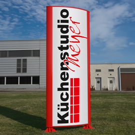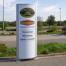 Setzen auch Sie bereits auf die anziehende Wirkung von Werbepylonen? Falls nein – worauf warten Sie noch? Gestalten Sie mit LoGo! noch heute Ihren idealen Werbeträger! Wir halten verschiedenste Ausführungen für Sie bereit, die Sie individuell an Ihre Anforderungen anpassen können. Sämtliche Pylone, die Sie bei uns bestellen können, sind beleuchtet oder unbeleuchtet erhältlich.